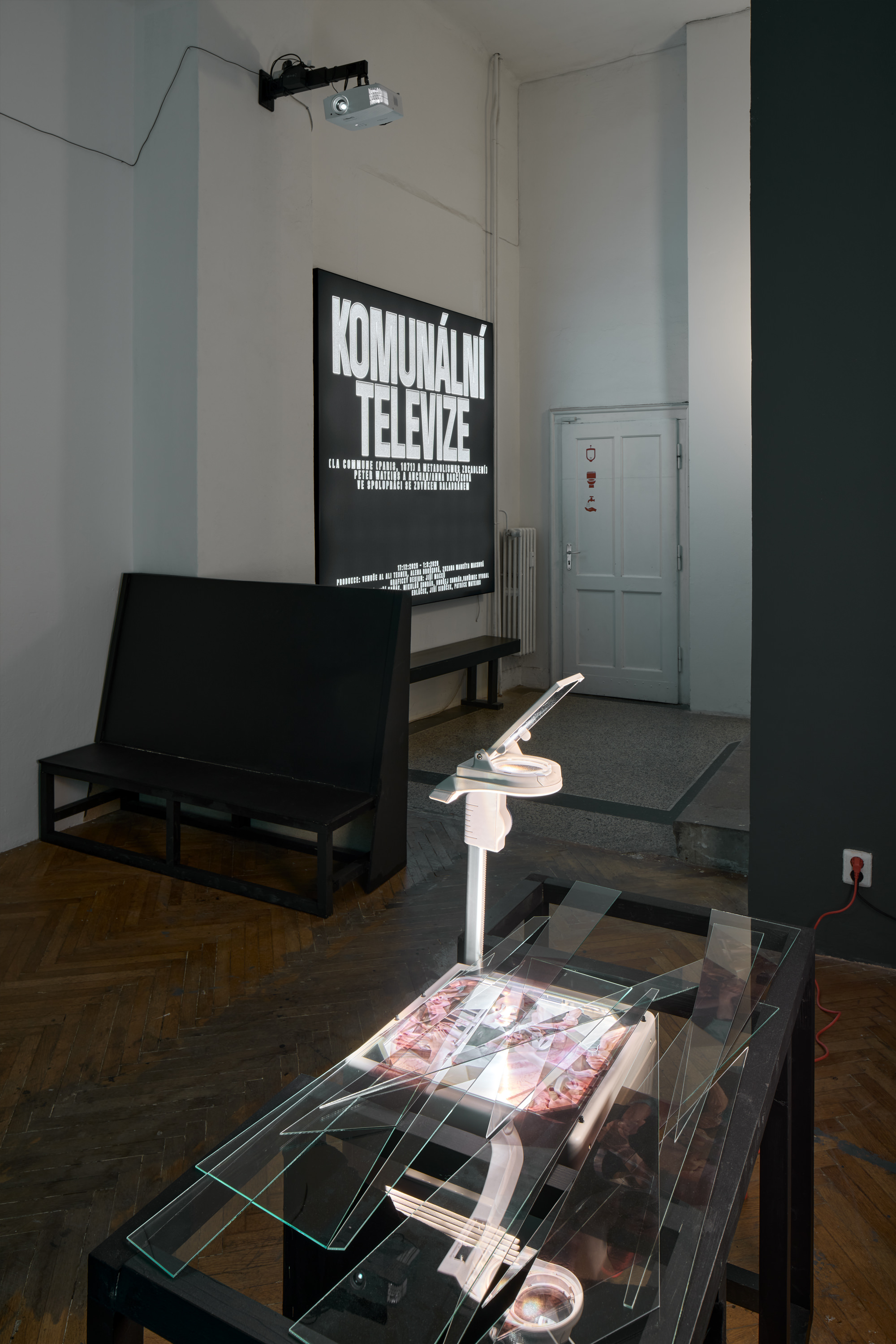 Výstava představuje a popisuje možnosti kolektivní akce. Název Komunální televize byl zvolen jako metafora, pokus o projekci kolektivní imaginace do srozumitelného hesla. Komunální televize je protipólem centralizované masové komunikace, která byla kdysi založena na frontálních a hierarchických principech, dnes je spíše decentralizovaná a hyperindividualistická. Komunální televize představuje něco konkrétního, zájmy a obsahy, které mají své vlastní mluvčí a dialogickou strukturu. Je to také odkaz na umělecké postupy na výstavě prezentovaného filmu La Commune (Paris, 1871), kde právě „televizní zpravodajství“ rámuje události Pařížské komuny v roce 1871. Nedávno zesnulý Peter Watkins ve svém díle teoreticky reflektoval a rozvinul filmové techniky, jak odhalovat povahu masových médií a jejich vliv na společnost a politiku. Tvrdil, že „každý muž, žena i dítě má základní právo na alternativní formy nenásilných, nekomerčních, nehierarchických masových nebo lokálních audiovizuálních médií“. A pokud si to přejí, měli by mít právo takové médium vytvářet. Byl přesvědčený, že komunikace znamená oboustranný proces sdílení a dialogu mezi stranami a že by takto měla fungovat i tzv. masová komunikace. Jako by mu vývoj v posledních letech dával za pravdu, skoro každý má dnes možnost vytvářet a sdílet svůj vlastní obsah. Ale vzájemná komunikace se tím stala komplikovanější a možnost společného politického sdílení skoro nemožná. Stále se totiž jedná o stejný typ manipulace a propagandy jako před digitální érou, jen v jiných, spletitějších podmínkách. V době monopolizace komunikačních kanálů, expanze algoritmických platforem a zpoplatnění jejich uživatelů zní skoro jako vtip mluvit v rámci nich samotných o politickém jednání. …