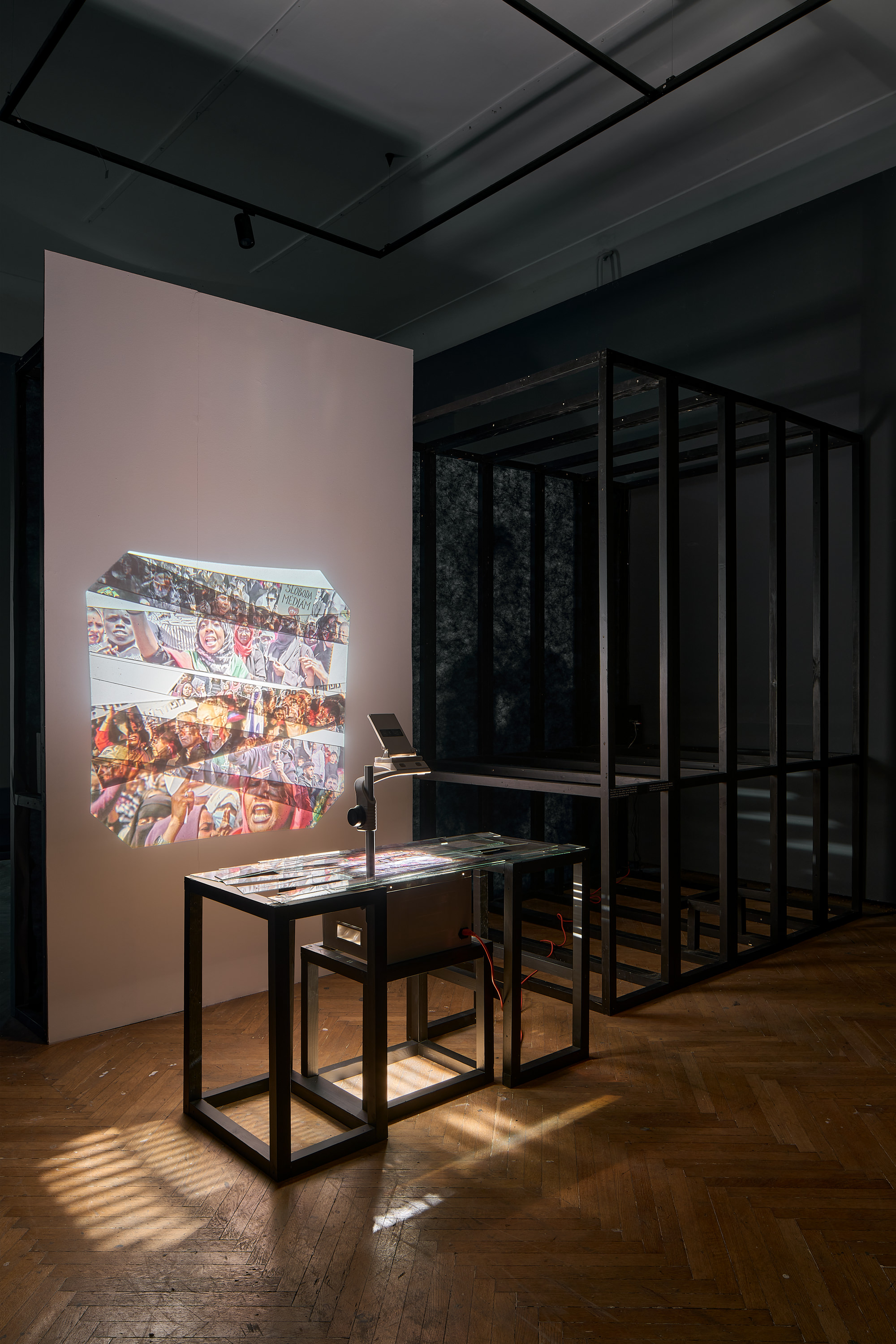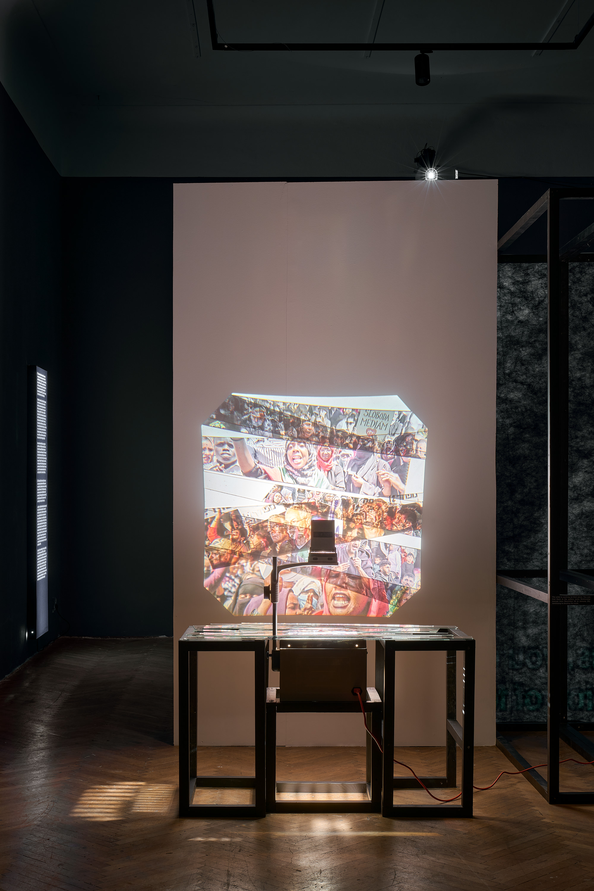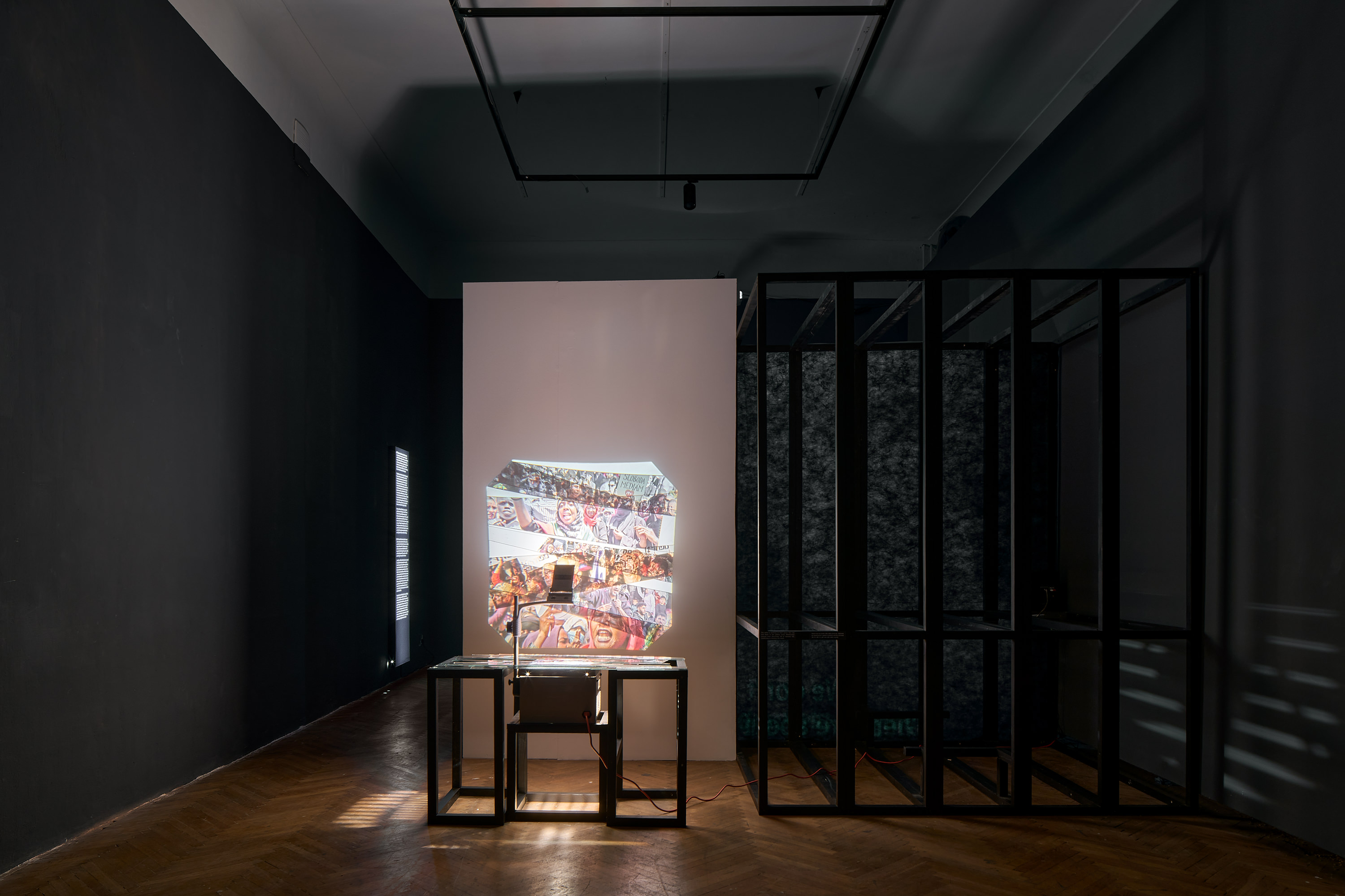 Ve druhé části výstavy, v práci Anchana/Anny Daučíkové nazvané Metabolismus zrcadlení, se otevírá nezvyklá aktualizace Watkinsova filmu. Nezvyklost je průvodním jevem i tvorby umělkyně. Její umělecký přístup by se dal popsat jako dialogický protipohyb. Ona sama, vždy osobně, v nějakém protipohybu, zrcadlení. Z jejího kurikula by se dalo namátkou vybrat několik příkladů, které o tom svědčí. Třeba přestěhování se do Sovětského svazu na konci socialistické éry v osmdesátých letech. Praxe malování obrazů zacílená na popření autorského principu. Radikální feministický aktivismus na Slovensku, v zemi, která se rozhodla vrátit ke svým katolickým kořenům. Vystudovaná sklářka, redefinující standardy pohyblivého obrazu na mezinárodní umělecké scéně. Nebo také ve věku manicheistických zjednodušení trvající na nonbinaritě jako základním principu lidských vztahů. Podobně jako Peter Watkins přispěl ke kritice nových médií metodami jejich vlastní praxe, navrhuje Anchan/Anna Daučíková svou vlastní metabolickou reflexi současných protestů. Na svět se již není možné dívat pouze skrze logiku karteziánské binarity. Projekce současných protestních shromáždění na stěnu galerie se nám tak jeví nejenom jako obraz ideologických animozit, ale odhaluje se v ní cyklický pohyb závislostí, reakcí a vyrovnávání se s nepředvídatelnými událostmi. A to lze jen kolektivně. Společně se učit, společně reagovat a společně jednat. Vybízí diváctvo k počáteční aktivitě a přemýšlení nad svou rolí, zatímco v uších doznívají zpovědi pařížských komunardů. …
